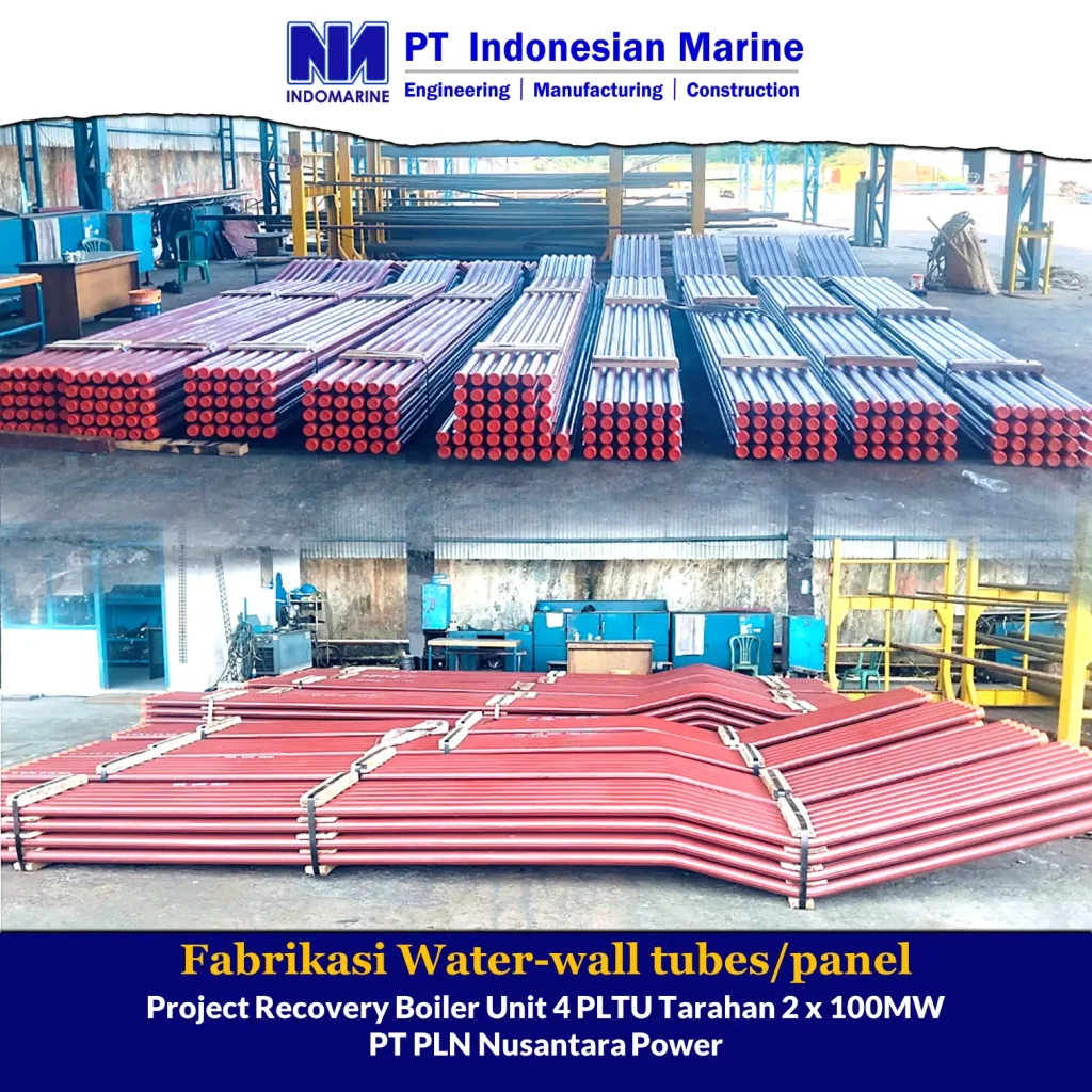 Waterwall tubes/panel merupakan bagian yang terintegrasi dengan furnace (dapur) pada sistem boiler. Komponen ini memiliki peran penting dalam proses perpindahan panas radiasi yang dihasilkan dari proses pembakaran bahan bakar di dalam furnace, dan berfungsi menyerap panas untuk memanaskan air menjadi uap bertekanan tinggi. Oleh karena itu, selain memerlukan material khusus, proses pengerjaan atau fabrikasinya juga memerlukan mesin khusus dan tenaga kerja yang ahli/terampil, serta sistem pengendalian mutu yang ketat – dimana seluruhnya tersedia dan terintegrasi dalam proses kerja di PT Indonesian Marine (INDOMARINE).