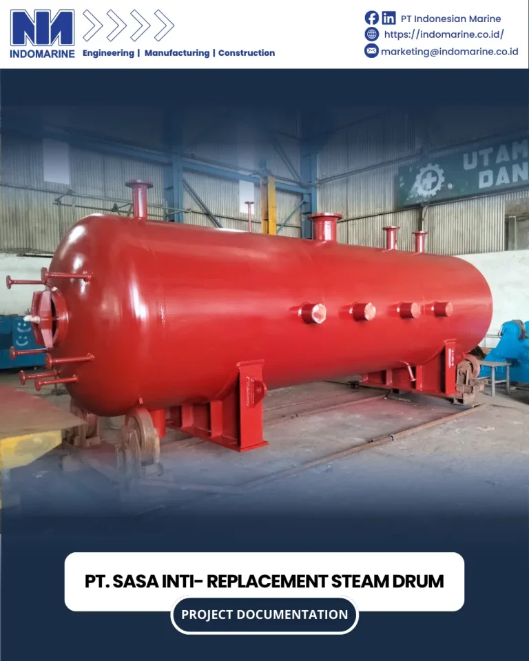 Replacement Steam Drum di PT Sasa Inti – Gending Plant telah dilaksanakan. Steam Drum baru diproduksi oleh PT Indonesian Marine dengan standar ASME Stamp